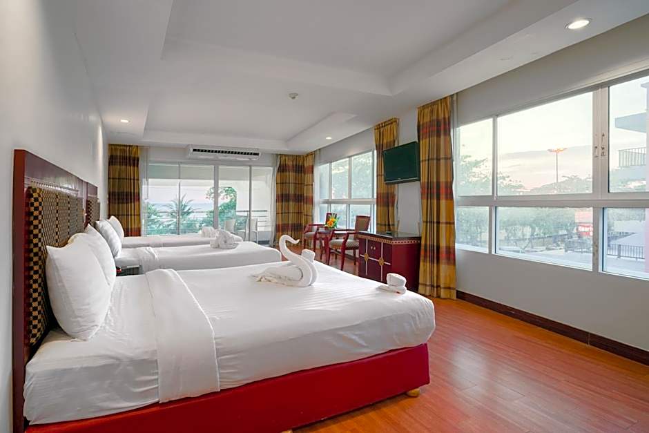 The spacious family room provides air conditioning, a tea and coffee maker, a terrace with sea views as well as a private bathroom featuring a shower. The unit offers 3 beds.